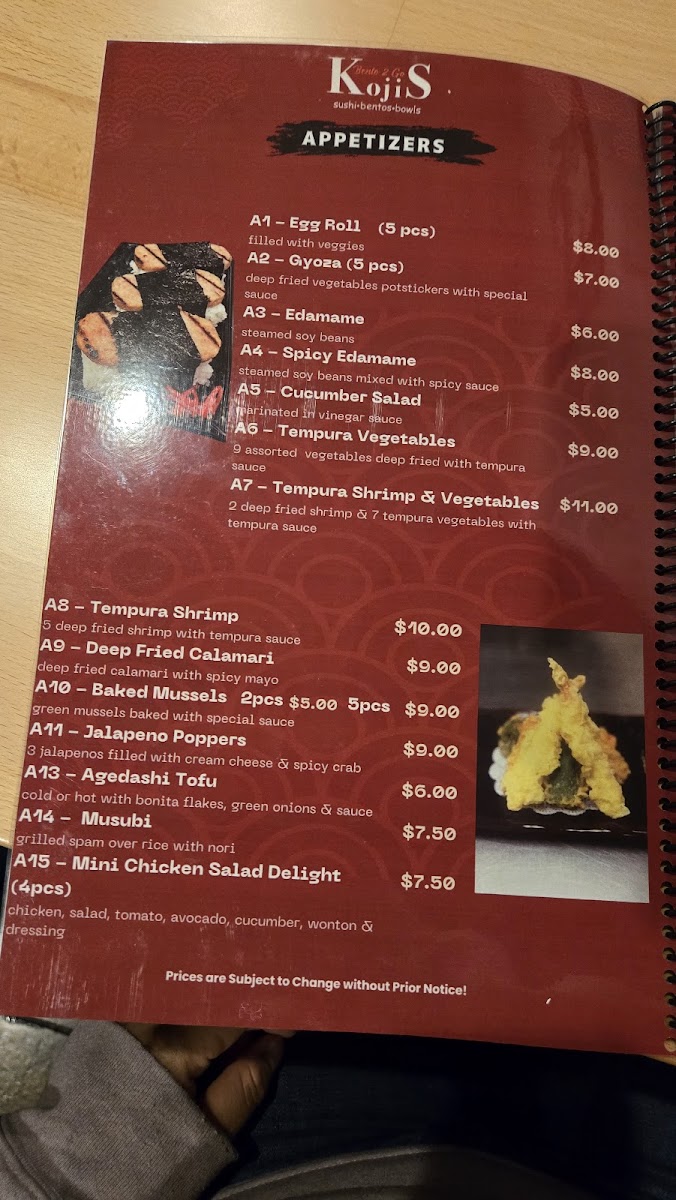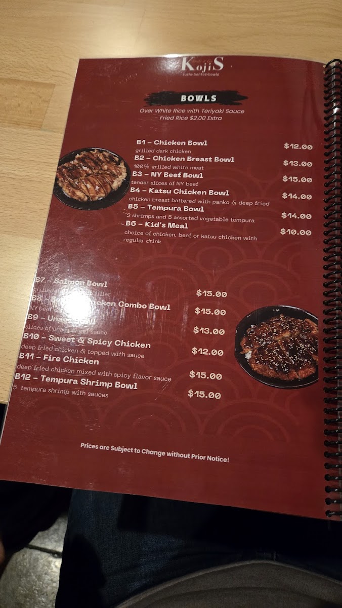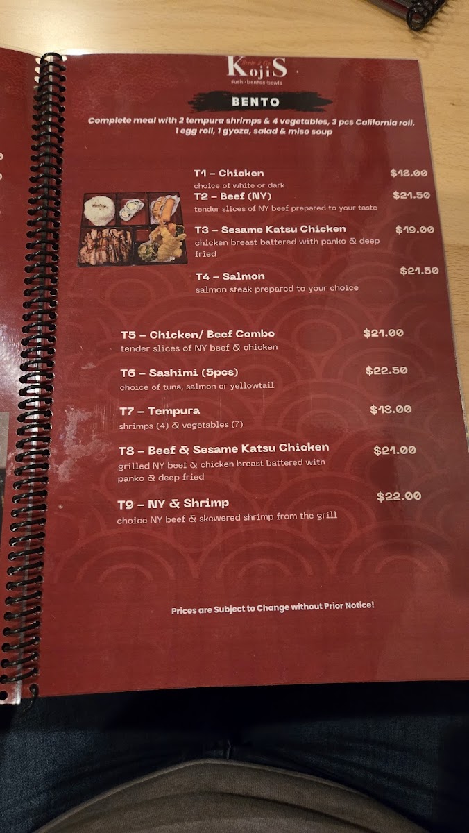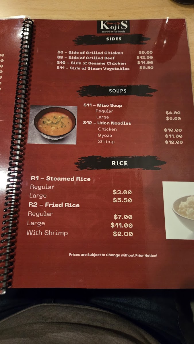 Kojis Bento2Go Menu