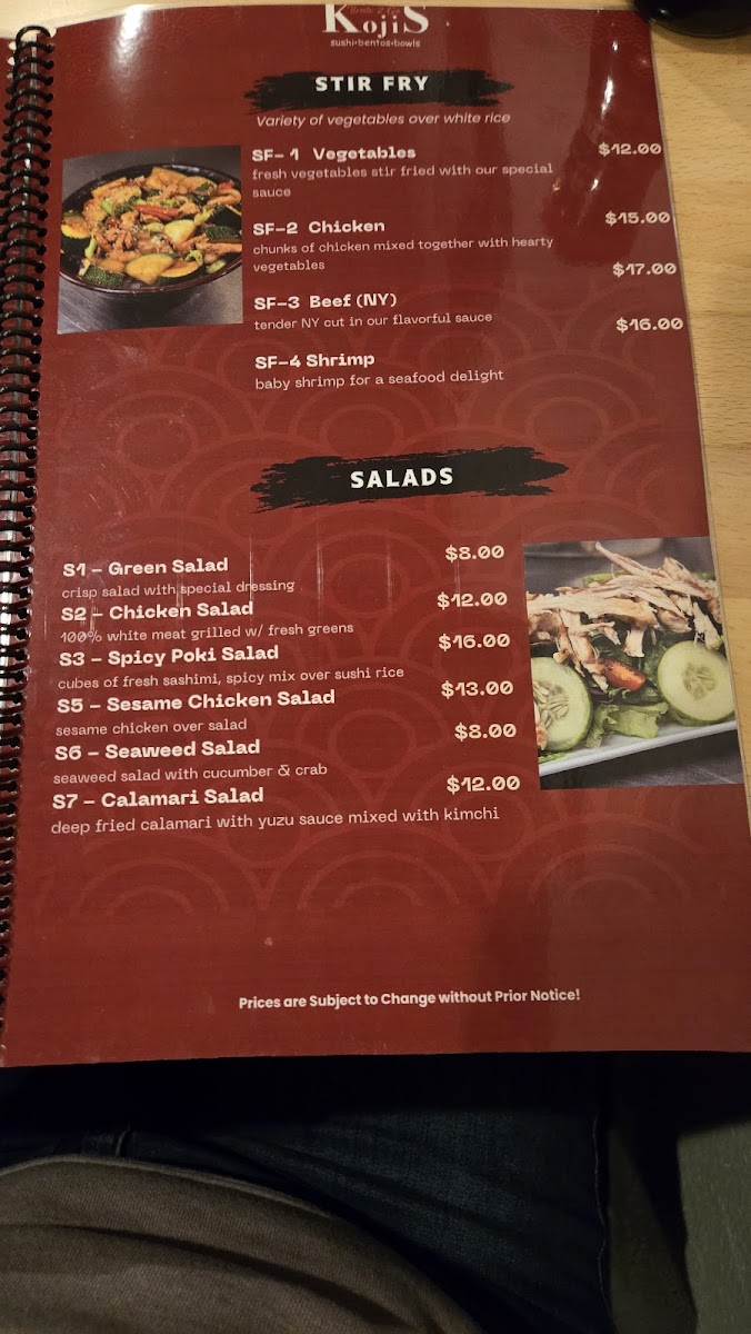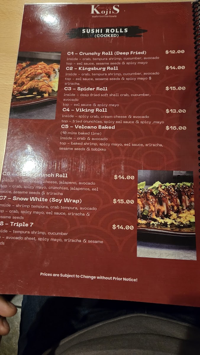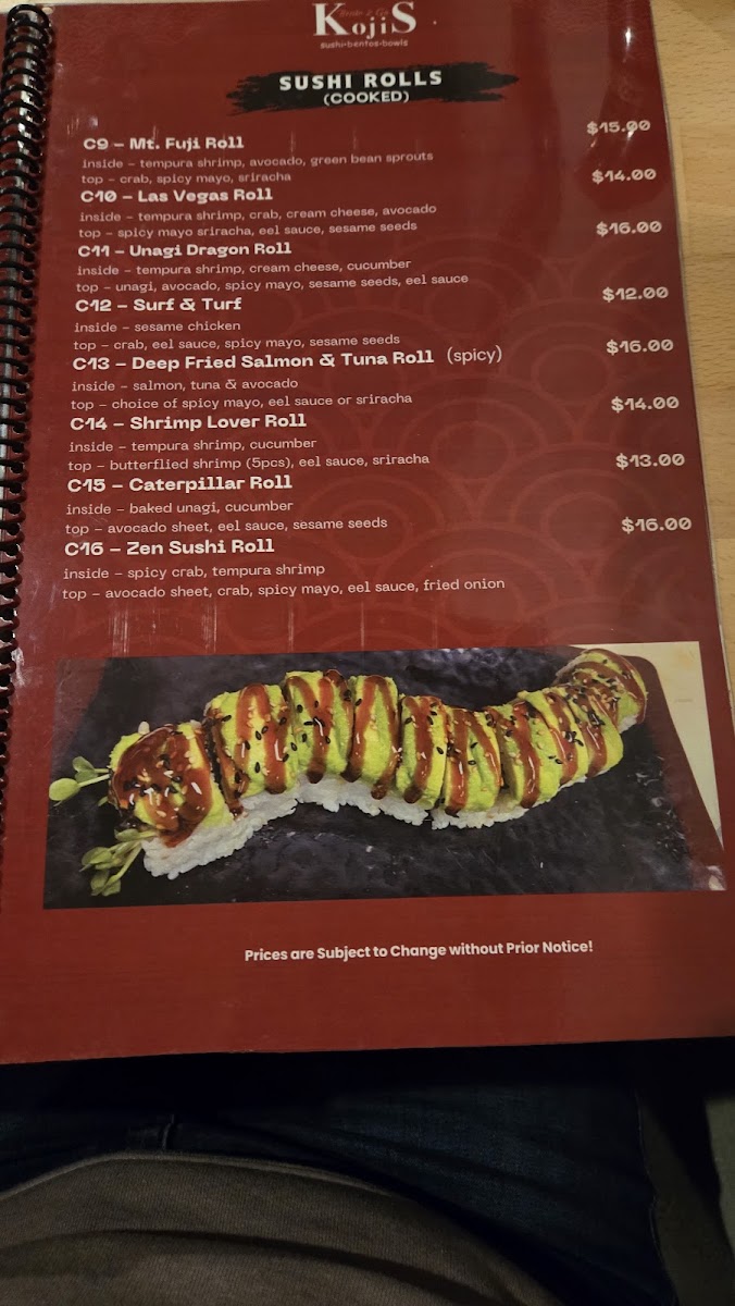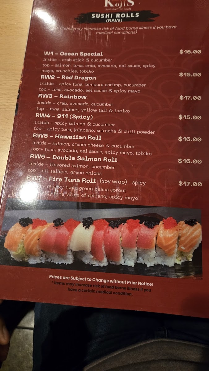 Kojis Bento2Go Menu